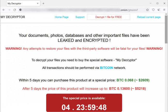 Voici un aperçu du site de paiement Magniber Tor vers lequel sont redirigés les utilisateurs dupés par de fausses mises à jour Windows 10. (Crédit : BleepingComputer)